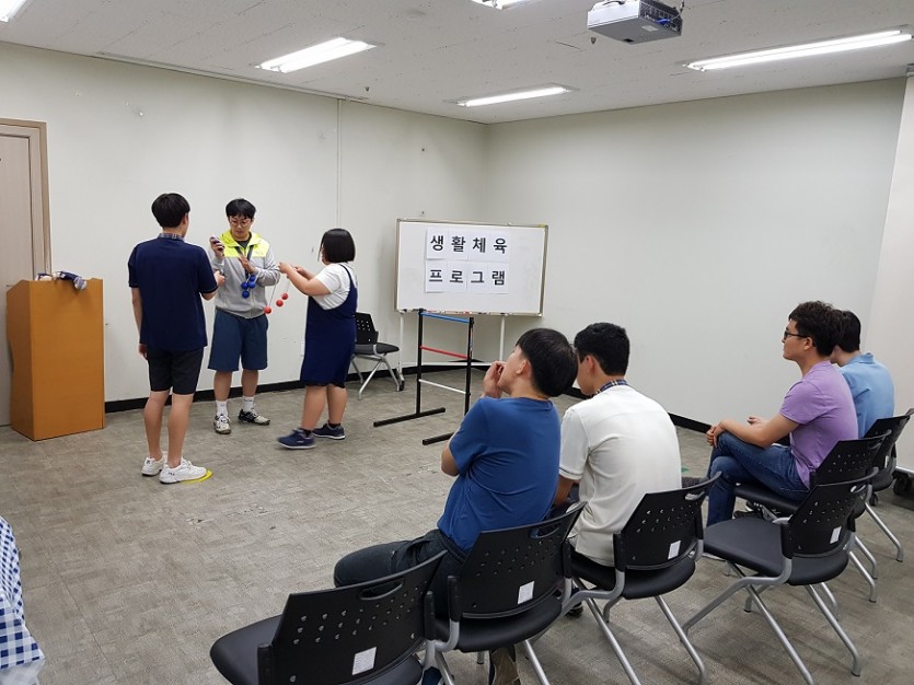 장애인 생활체육 프로그램 (7회기) 페이지 정보 작성자 관리자 댓글 0건 조회 2,499회 작성일 19-05-22 00:21 목록 본문 페이스북 공유 트위터 공유 구글+ 공유 장애인 생활체육 프로그램 7회기 진행하였습니다. 간단한 체조와 보치아볼, 레더볼을 활용하여 뉴스포츠 게임규칙 알아보기, 사고력, 집중력 기르기 진행하였습니다~^^ 이전글무지개동아리 활동 19.05.24 다음글장애인 생활체육 프로그램 (6회기) 19.05.16