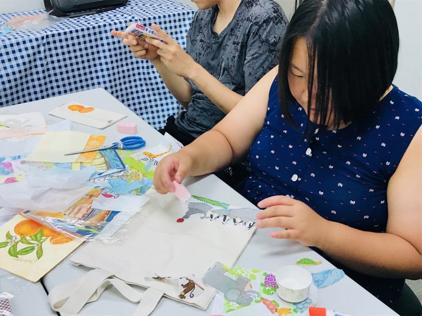 무지개동아리 활동 페이지 정보 작성자 관리자 댓글 0건 조회 2,429회 작성일 19-06-28 00:21 목록 본문 페이스북 공유 트위터 공유 구글+ 공유 무지개동아리(성인발달장애인 당사자 자조모임)의 네번째 활동으로 냅킨공예를 진행하였습니다. 에코백, 필통, 부채도 만들었어요~ 이전글장애인 생활체육 프로그램 (12회기) 19.07.05 다음글장애인 생활체육 프로그램 (11회기) 19.06.27