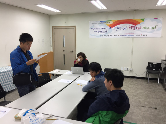 자기결정 UP! 행복 UP! Mind UP! 7주차(월) 모임 페이지 정보 작성자 김아롬 댓글 0건 조회 2,285회 작성일 17-10-17 00:20 목록 본문 페이스북 공유 트위터 공유 구글+ 공유 이전글동료상담사 심화과정 6주차(수) 17.10.18 다음글부모교실 토탈공예 1주차 (월) : 천연비누 만들기 17.10.17