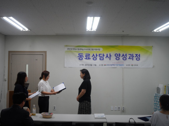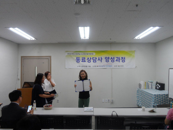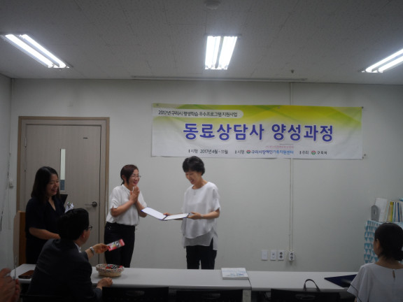 2017 동료상담사 양성과정 15주차 수료식 페이지 정보 작성자 김아롬 댓글 0건 조회 2,287회 작성일 17-07-19 00:20 목록 본문 페이스북 공유 트위터 공유 구글+ 공유 이전글몸만들기 성인장애인 체형교정 P.T 프로그램 2주차 (목) 17.07.20 다음글몸만들기 성인장애인 체형교정 P.T 프로그램 2주차 (화) 17.07.19