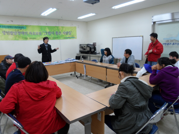 그림이 좋은 사람들 <자조모임 5회기> 페이지 정보 작성자 이윤옥 댓글 0건 조회 2,255회 작성일 14-04-09 00:20 목록 본문 페이스북 공유 트위터 공유 구글+ 공유 이전글부모교육 (발달장애인법안 설명회> 14.04.09 다음글그림이 좋은 사람들 <자조모임 3회기> 14.04.09