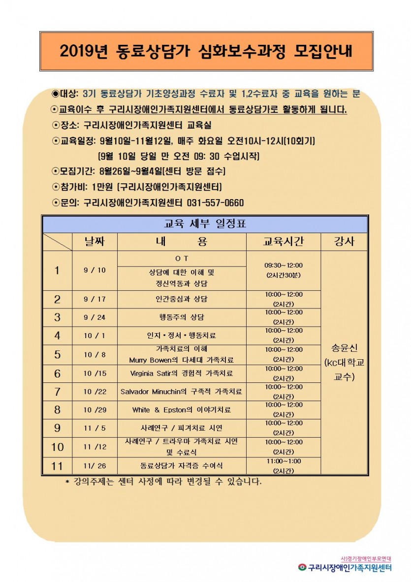 2019년 동료상담 양성과정 (모집) 페이지 정보 작성자 관리자 댓글 0건 조회 9,447회 작성일 19-08-19 00:18 목록 본문 페이스북 공유 트위터 공유 구글+ 공유 이전글하반기 사회복지 현장 실습생 모집 19.08.20 다음글육아휴직 대체인력 모집(마감) 19.08.28 댓글 0 댓글목록 등록된 댓글이 없습니다.