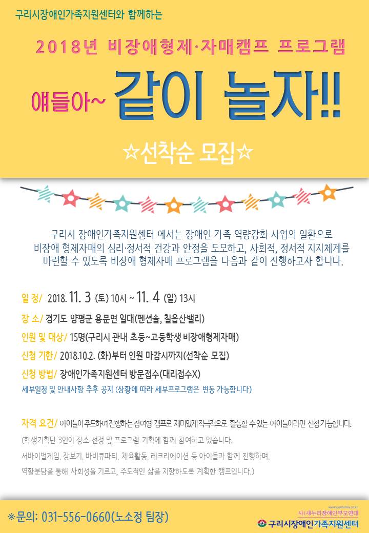가족역량강화사업 비장애형제자매 캠프 참가자를 모집합니다. > 센터알림