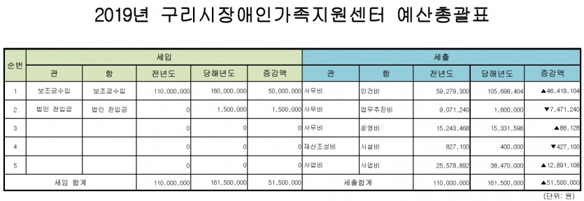 2019년 구리시장애인가족지원센터 예산총괄표 페이지 정보 작성자 관리자 댓글 0건 조회 9,366회 작성일 19-02-07 00:18 목록 본문 페이스북 공유 트위터 공유 구글+ 공유 이전글구리시장애인가족지원센터 2월 일정표 19.02.07 다음글설연휴 센터휴무 공지 19.02.01 댓글 0 댓글목록 등록된 댓글이 없습니다.