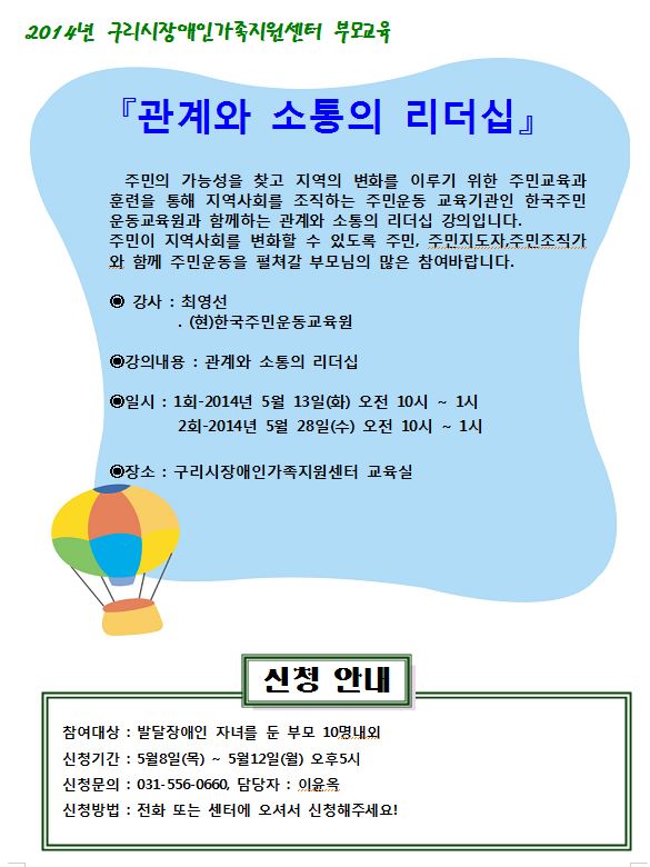 부모교육 <관계와 소통의 리더십> 페이지 정보 작성자 이윤옥 댓글 0건 조회 8,452회 작성일 14-05-09 00:18 목록 본문 페이스북 공유 트위터 공유 구글+ 공유 이전글부모교육 <사회적기업과 협동조합의 이해> 14.05.13 다음글<뮤지컬 체험,교육 프로젝트> 14.04.30 댓글 0 댓글목록 등록된 댓글이 없습니다.