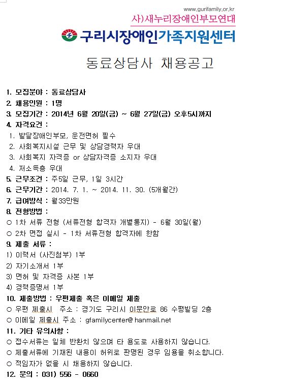  이메일 제출시 주소 : gfamilycenter@hanmail.net
